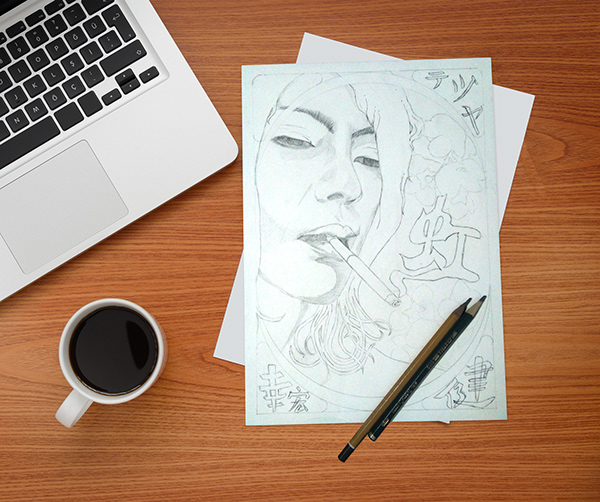 Materiais: Grafite 4B e 6B, caneta nankin e esfuminho sobre sulfite A4, gramatura de 75gm².
